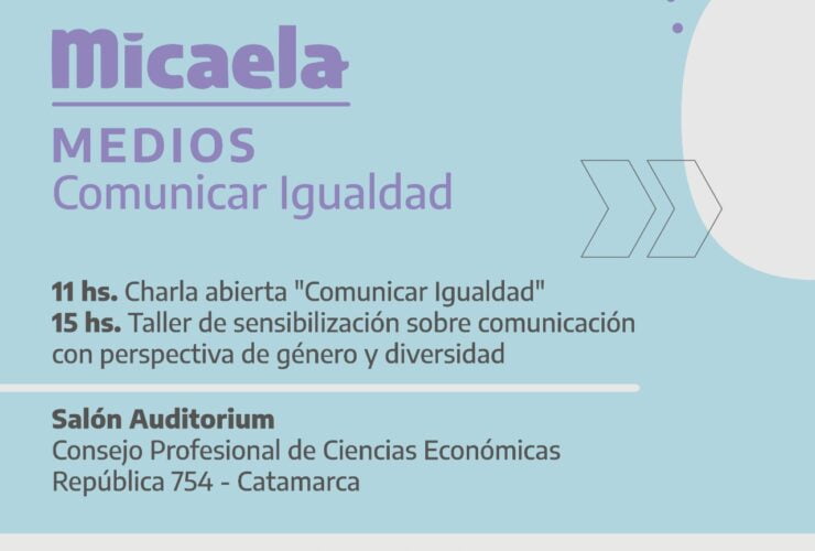 Estimados Colegas Invitamos a todos uds a participar de la capacitación sobre perspectiva de género denominada «Micaela Medios – Comunicar Igualdad»Esta capacitación es organizada por la Secretaría de Mujeres Géneros y Diversidad de Catamarca, junto a la Secretaria de Prensa y Coordinación, dependientes del Ministerio ...