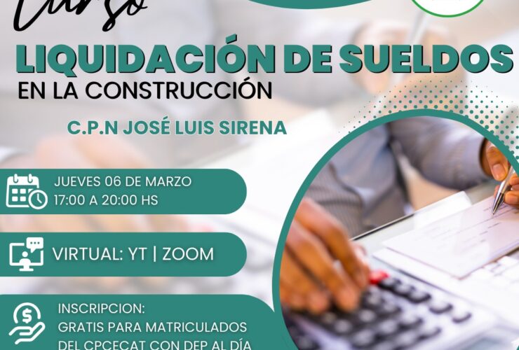 Estimados ColegasInvitamos a uds a participar del Curso – Liquidación de sueldos en la construcción», a cargo del CPN Jose Luis Sirenael mismo se llevará a cabo el día jueves 06/03, en el horario de 17 a 20 hs Inscribirse aquí: https://forms.gle/GX6eZHRM7YhowSgaA Temario: Valor de ...
