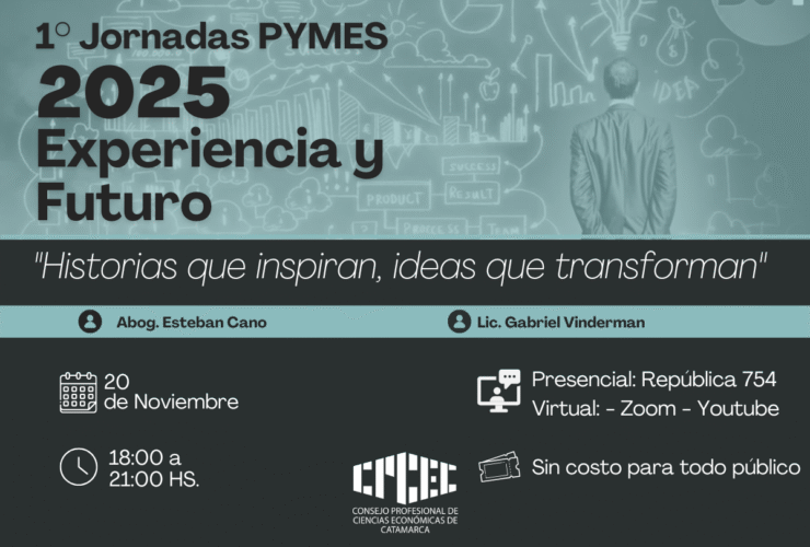 Estimados Colegas Invitamos a uds a participar de las «1° Jornadas Pymes 2025 – Experiencia y Futuro», bajo el lema «Historias que inspiran, ideas que transforman», a llevarse a cabo el día jueves 20 de noviembre.Organizada por la Comisión Pymes de nuestro Consejo El objetivo ...