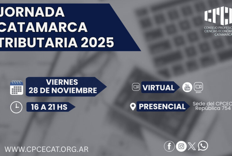 Estimados Colegas Invitamos a participar de una nueva «Jornada Catamarca Tributaria» a realizarse el día viernes 28/11, en el Salón Auditorio de nuestra sede, en el horario de 16 a 21 hs. Organizada por la Comisión de Impuestos de nuestro Consejo.Contaremos con la participación de ...