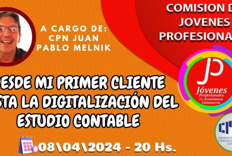 Estimados Colegas Informamos a uds que el lunes 08/04, se llevará a cabo el taller «Desde mi Primer Cliente hasta la Digitalización del Estudio Contable» a cargo del CPN Juan Pablo Melnik. El mismo es organizado por la Comisión de Jóvenes Profesionales.Será de modalidad mixta, ...
