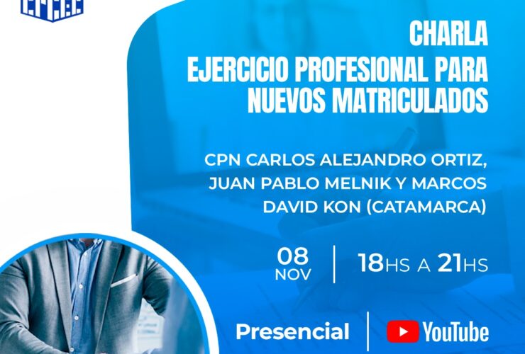Estimados Colegas Recordamos a ustedes que hoy martes 08/11 se llevará a cabo la se llevará a cabo la Charla denominada «Ejercicio profesional para nuevos matriculados», a cargo de los CPN Carlos Alejandro Ortiz, Juan Pablo Melnik y Marcos David Kon (Catamarca). ✳️Link de youtube ...