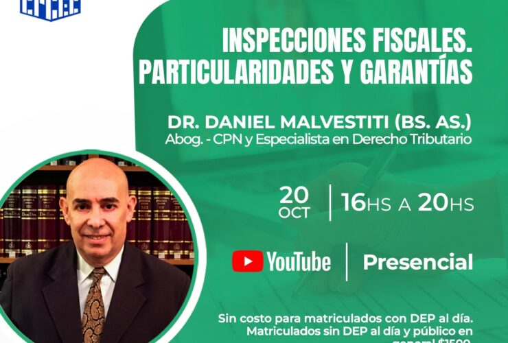 Estimados Colegas Invitamos a ustedes a participar de la charla sobre «Inspecciones Fiscales. Particularidades y Garantías», a cargo del Abog y CPN Daniel Malvestiti.El mismo será de modalidad mixta, virtual y presencial. También se transmitirá en vivo por nuestro canal de youtube 📆Día y Hora: ...