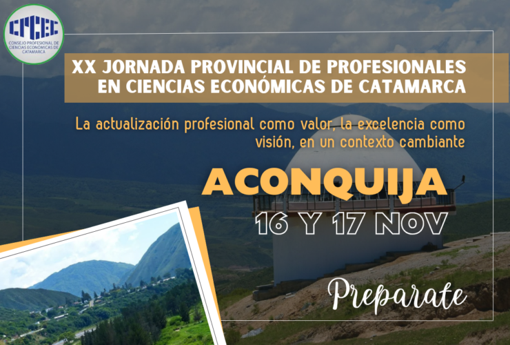 Estimados Colegas! Recordamos a uds que mañana 16/11 se llevará a cabo nuestra XX Jornada Provincial de Profesionales en Ciencias Económicas, en la localidad de Aconquija, donde presenciaremos charlas sobre importantes temas de actualidad y confraternizaremos con nuestros colegas del interior provincial.El evento académico es ...