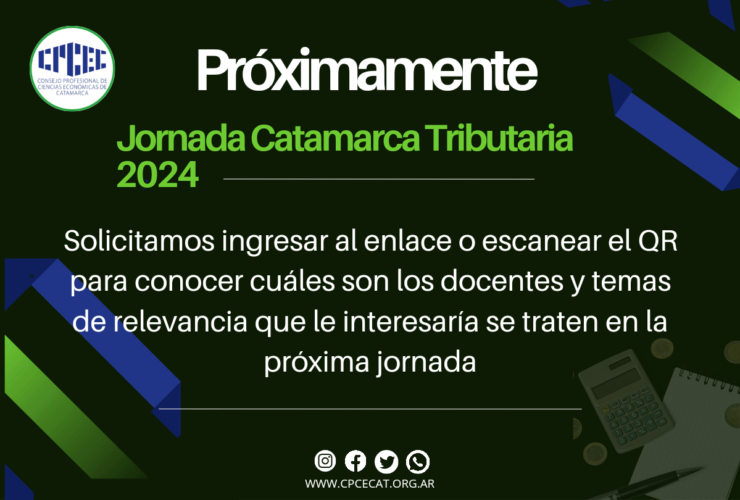 Estimados Colegas: A fin de poder conocer el interés de nuestros matriculados para la próxima Jornada Catamarca Tributaria, les solicitamos tengan a bien completar el siguiente relevamiento: https://acortar.link/Z9qmCc Es importante que participen de este relevamiento indicando cualquier tipo de temas y docentes de interés, a fin ...