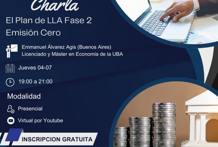 Estimados Colegas Invitamos a ustedes a participar de la charla «El Plan de LLA Fase 2: Emisión Cero» a cargo del Licenciado y Máster en Economía de la UBA Emmanuel Álvarez Agis (Buenos Aires)Será de modalidad mixta, virtual y presencial. La misma es organizada por la empresa ...