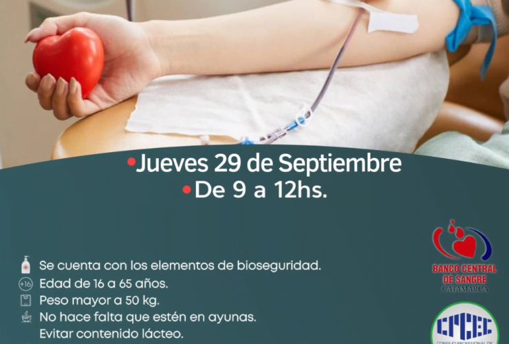 Estimados Colegas Invitamos a uds. a la Colecta de Sangre e Inscripción al Registro de Células Madre, a realizarse el día jueves 29/9, de 9 a 12 hs en la sede de nuestro Consejo.Se emitirá una constancia para ser presentada a quien lo solicite. -Se cuenta con los elementos de bioseguridad-No ...