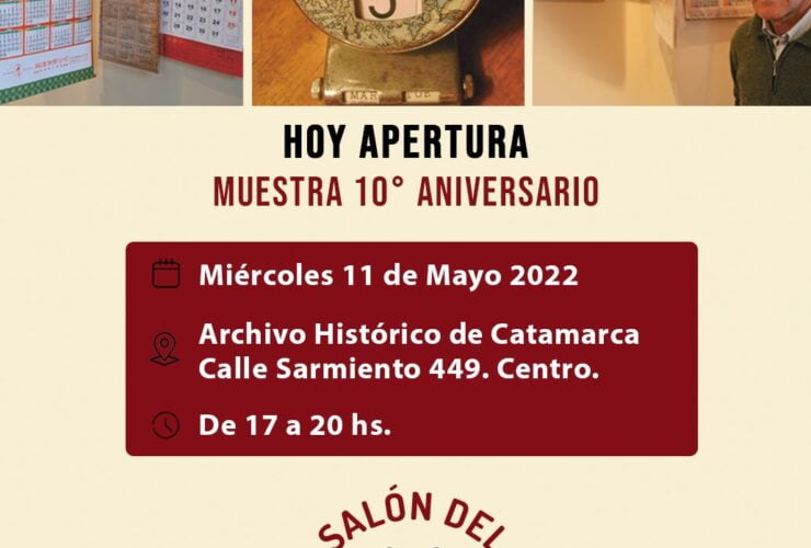 Estimados colegas Tenemos el agrado de invitarlos a participar de la «Muestra 10° Aniversario» del Museo – Salón de Almanaques, a realizarse entre hoy miércoles 11 y el 14 de mayo, de 17 a 20 hs. en el Archivo Histórico de Catamarca, en calle Sarmiento ...