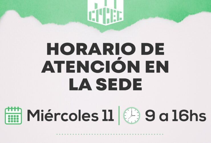 Estimados Colegas Informamos a uds que mañana 11/05 el Consejo atenderá al público a partir de las 9 am, hasta las 16 hs., luego retomaremos el horario habitual, es decir de Lunes a Viernes de 8 a 16 hs. SaludosConsejo DirectivoCPCE Catamarca ...