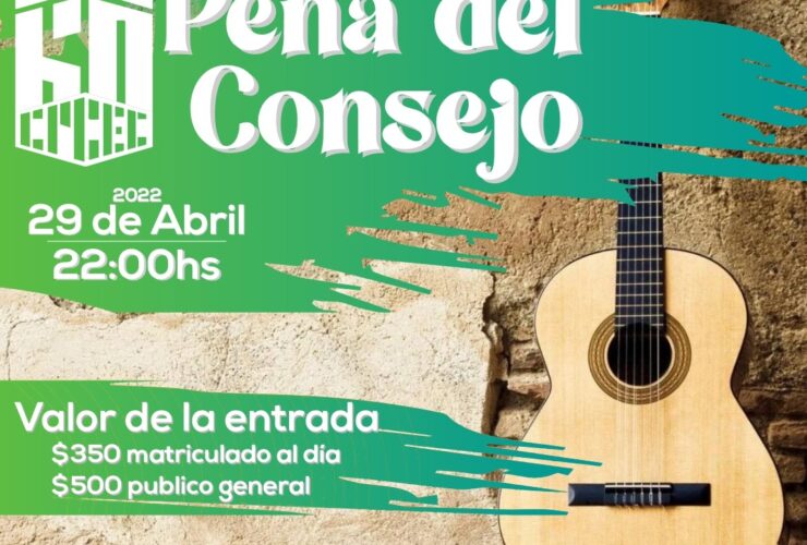 Estimados Colegas Recordamos a uds que este viernes 29/04 nuestro Consejo realizará la tradicional Peña Folklórica, a partir de las 22 hs y hasta la 04:30 hs en el Predio Social y Deportivo del CPCE, ubicado en Santa Rosa, Valle Viejo. Cupos limitados. Además de contar con destacados ...