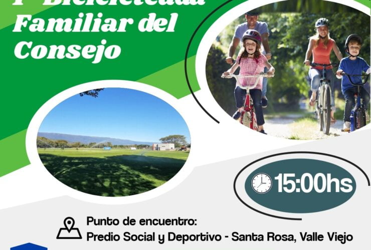 Estimados Colegas y Público en General: Recordamos a uds que el sábado 09/04, a partir de las 15 hs, se realizará la «1º Bicicleteada Familiar del Consejo», la cual tendrá como punto de encuentro nuestro Predio Social y Deportivo, ubicado en Santa Rosa, Valle Viejo.La ...