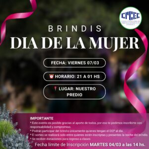 Act. Culturales y Deportivas Viernes 07/03 – Brindis Dia de la Mujer en nuestro Predio! Leer más » 25/02/2025 No hay comentarios