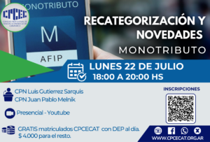 Capacitación Lunes 22/07 – Curso – Recategorización y novedades de monotributo Leer más » 18/07/2024 No hay comentarios